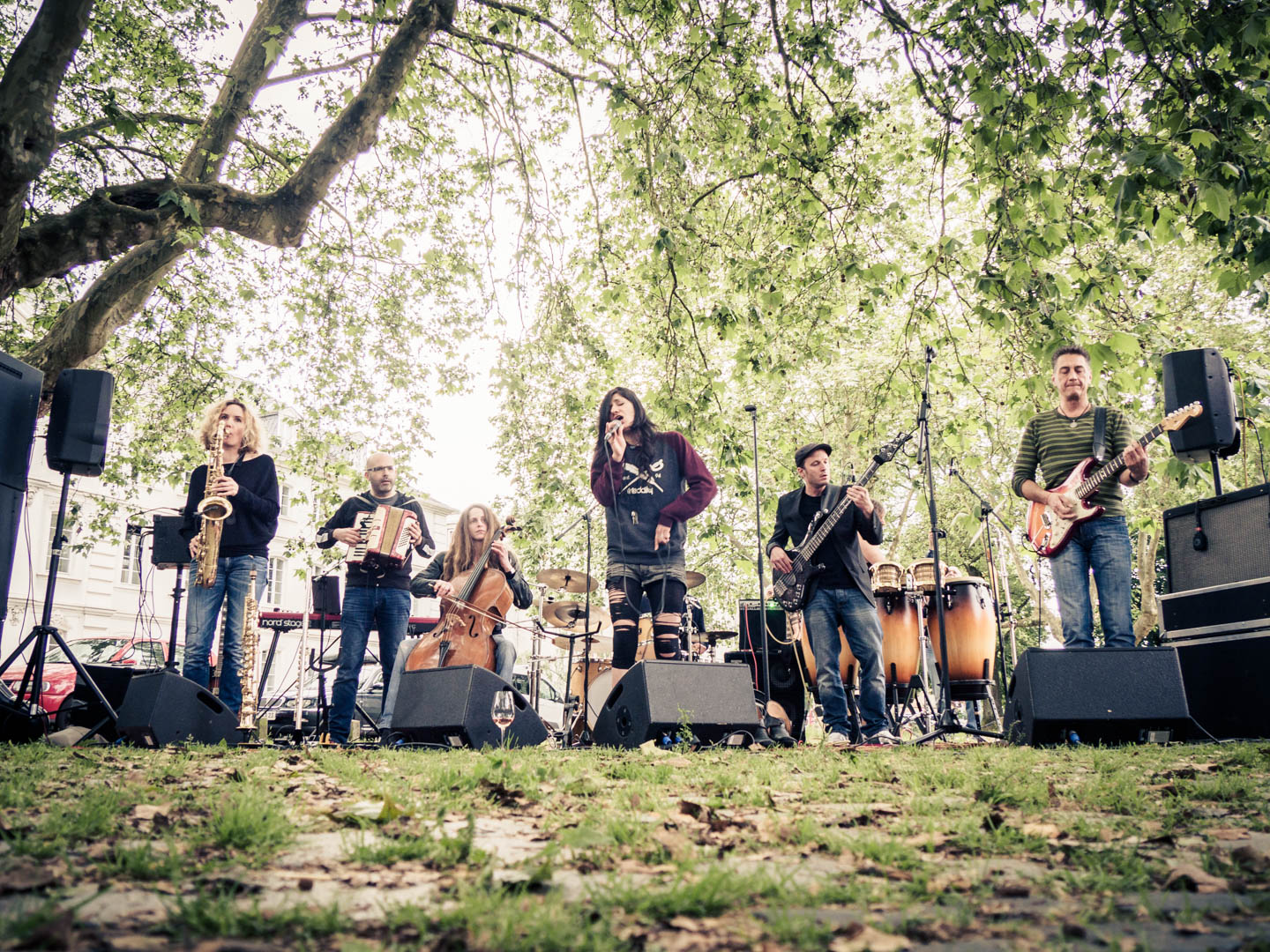 Savoy Truffle — 19.6.2016, »Fête de la Musique«, Ludwigsplatz Saarbrücken (Photo: © Katrin Reis) — Awa Taban-Shomal, Kathrin Berger, Konzert, René Müller, Sigrid Münchgesang, Thom Berger, Zippo Zimmermann, concert, live — P6190362