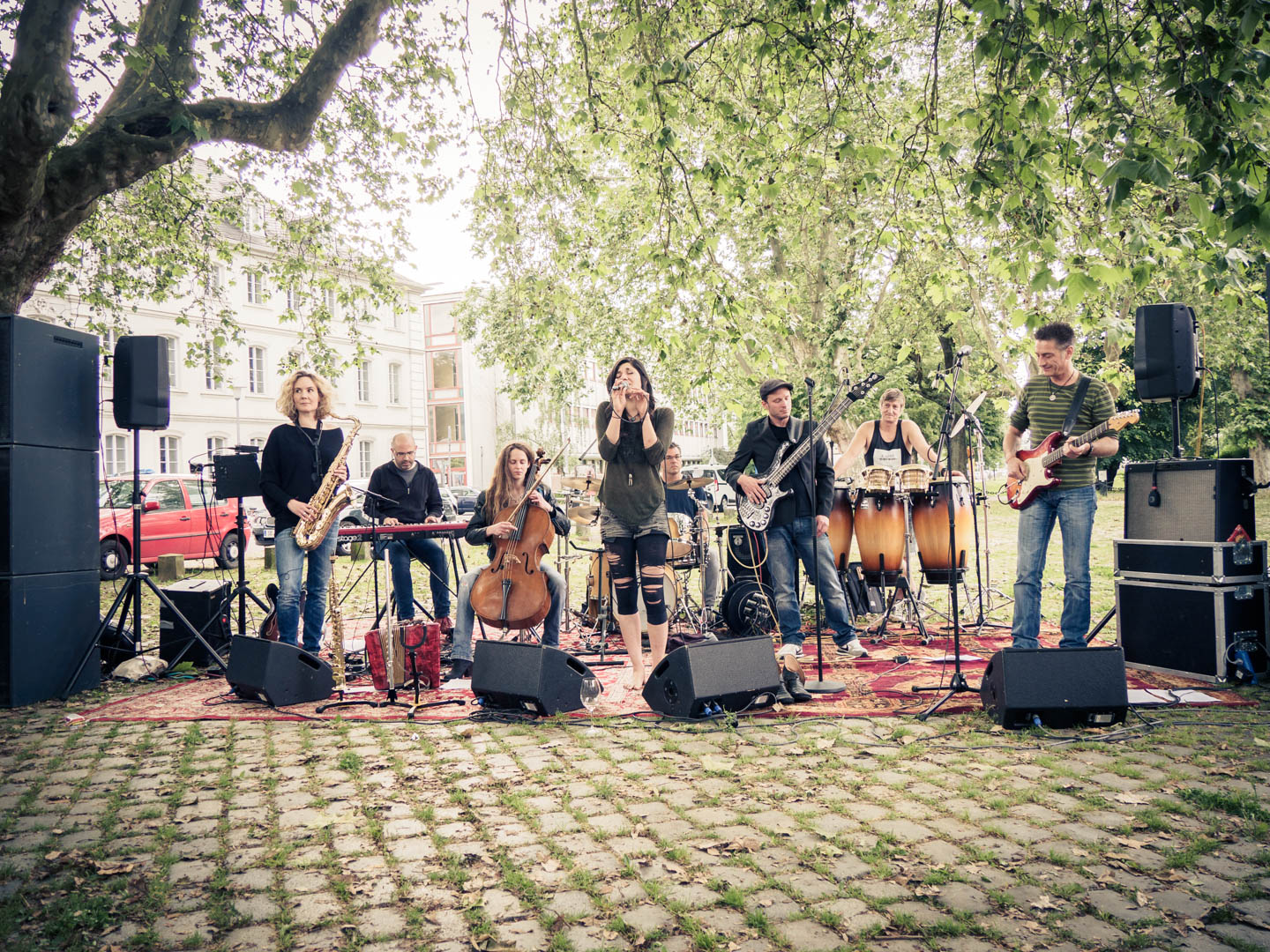 Savoy Truffle — 19.6.2016, »Fête de la Musique«, Ludwigsplatz Saarbrücken (Photo: © Katrin Reis) — Awa Taban-Shomal, Frank J. Meyer, Konzert, concert, live — P6190033