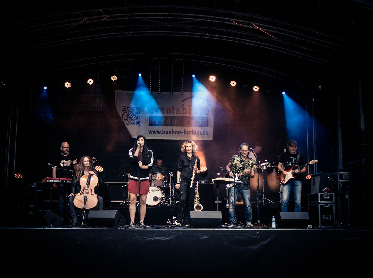 Savoy Truffle — Benefiz Festival, Bliesransbach, 02.09.2018 (Photo: © Katrin Reis, www.designladen.com, unauthorized use prohibited) — Awa Taban-Shomal, Christoph Brill, Frank J. Meyer, Kathrin Berger, Konzert, Sigrid Münchgesang, Thom Berger, Zippo Zimmermann, concert, live — P9020003
