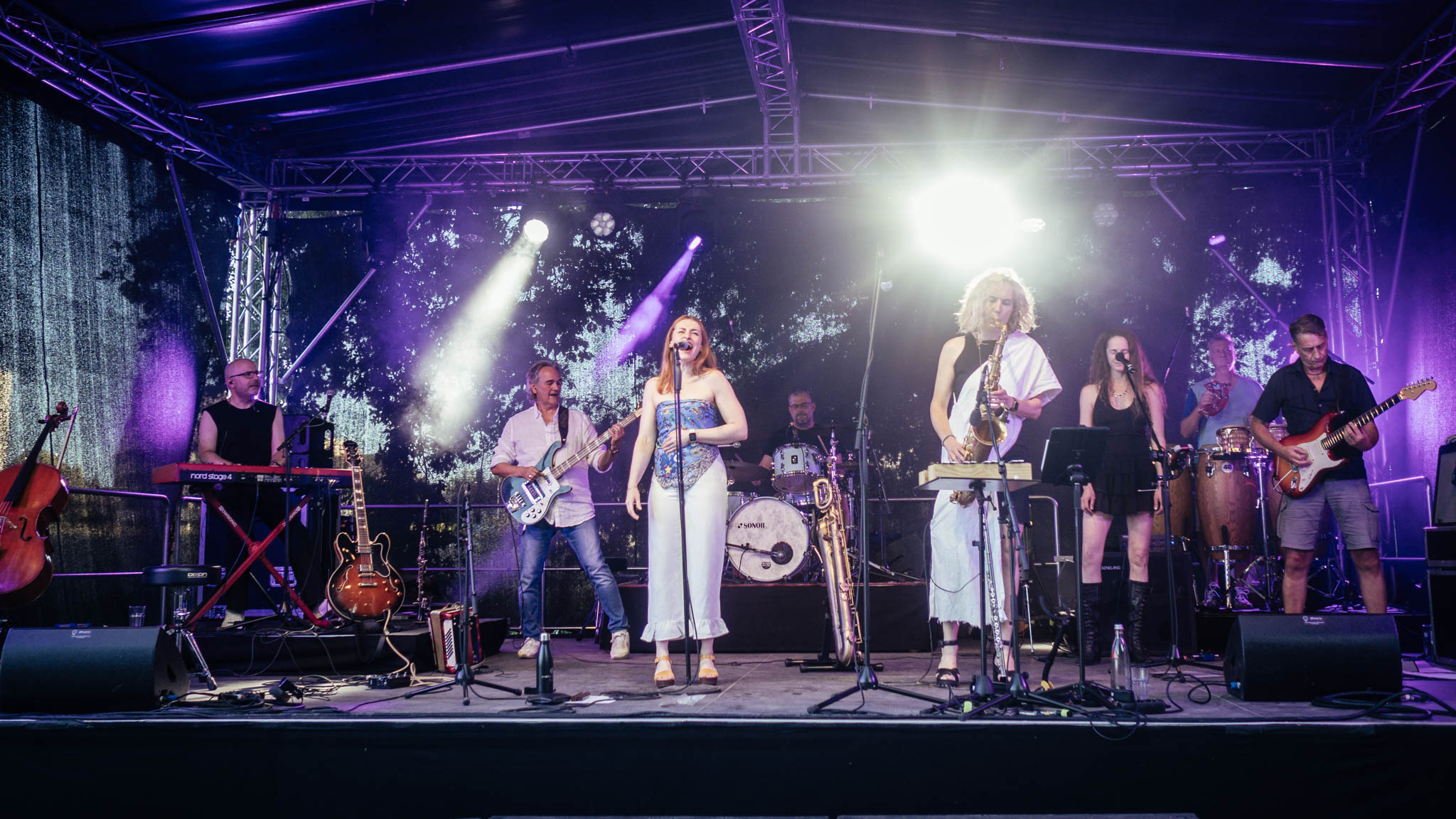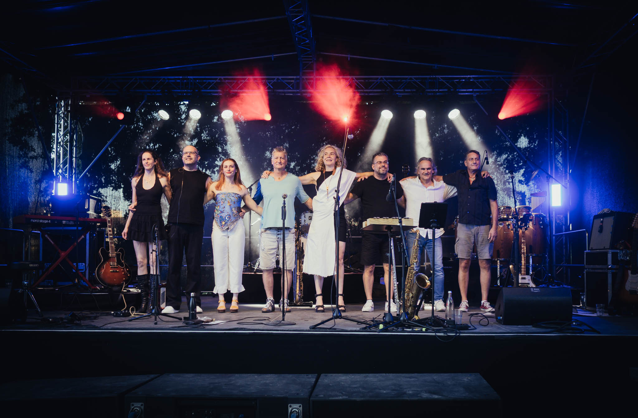 Savoy Truffle @ Vauban-Insel, Saarlouis — 17.08.2025 (Photo: Katrin Reis) — Alain Neumann, Christoph Brill, Frank J. Meyer, Kathrin Berger, Sarah Lysette, Sigrid Münchgesang, Thom Berger, Zippo Zimmermann — M8170621