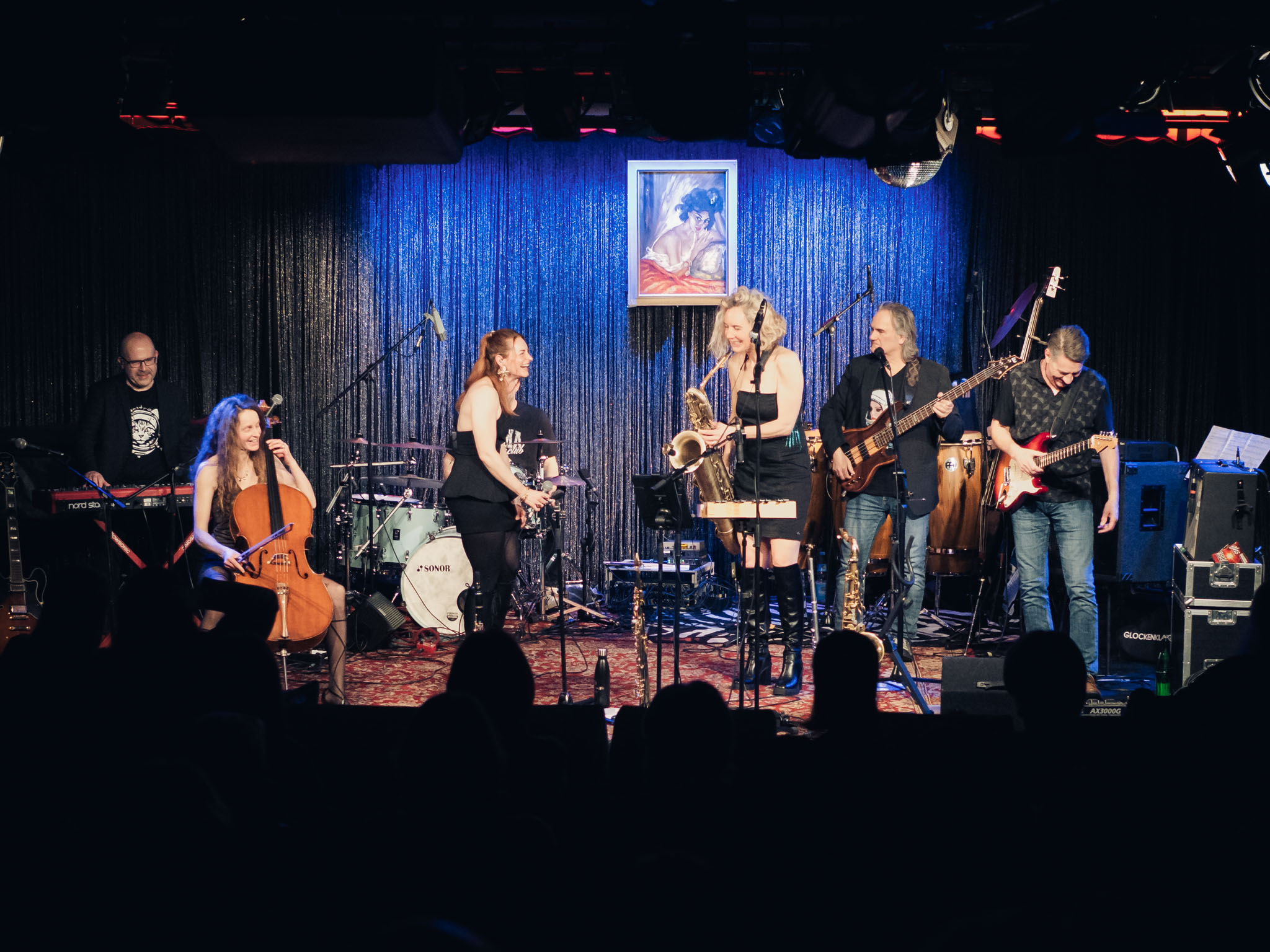 Savoy Truffle @ sparte4 — Saarbrücken, 21.02.2026 (Photo: Katrin Reis) — Alain Neumann, Christoph Brill, Frank J. Meyer, Sarah Lysette, Sigrid Münchgesang, Thom Berger, Zippo Zimmermann — M2210684